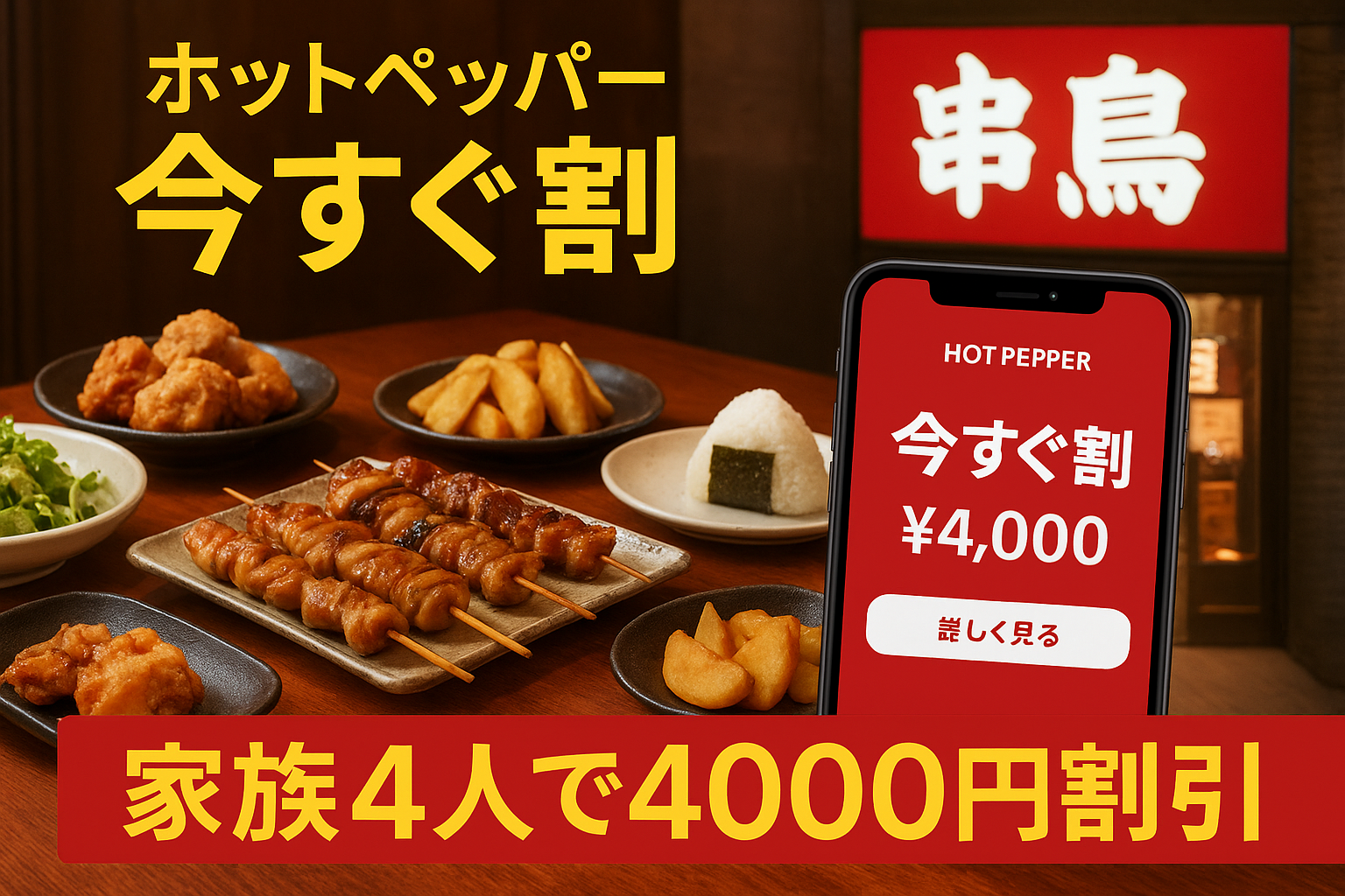 【終了間近】ホットペッパー「今すぐ割」で串鳥へ!家族4人で4000円割引された体験談
